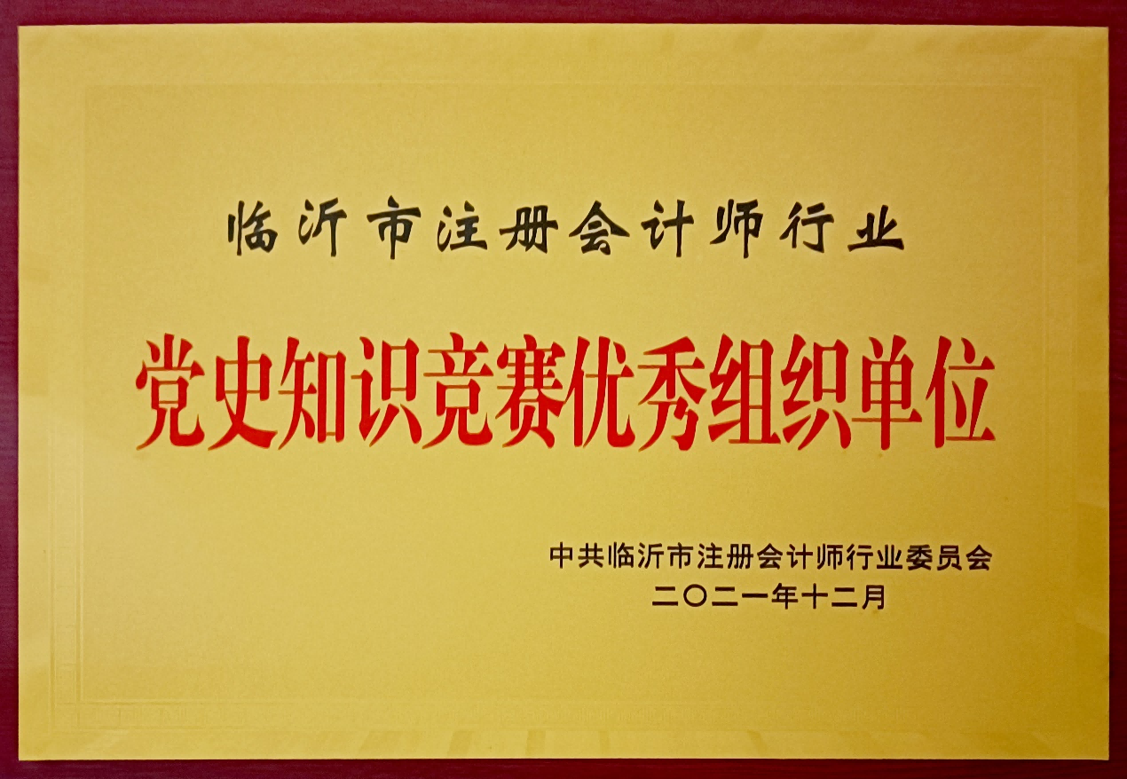 近日,臨沂市注冊會計師行業(yè)黨委表彰了部分行業(yè)黨組織,山東同泰管理咨詢集團黨總支被授予“臨沂市注冊會計師行業(yè)先進基層黨組織”和“臨沂市注冊會計師行業(yè)黨史知識競賽優(yōu)秀組織單位”的稱號。