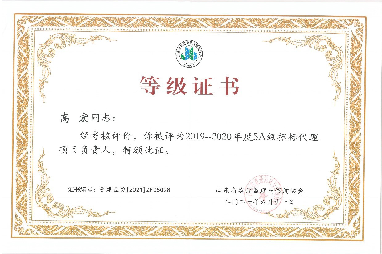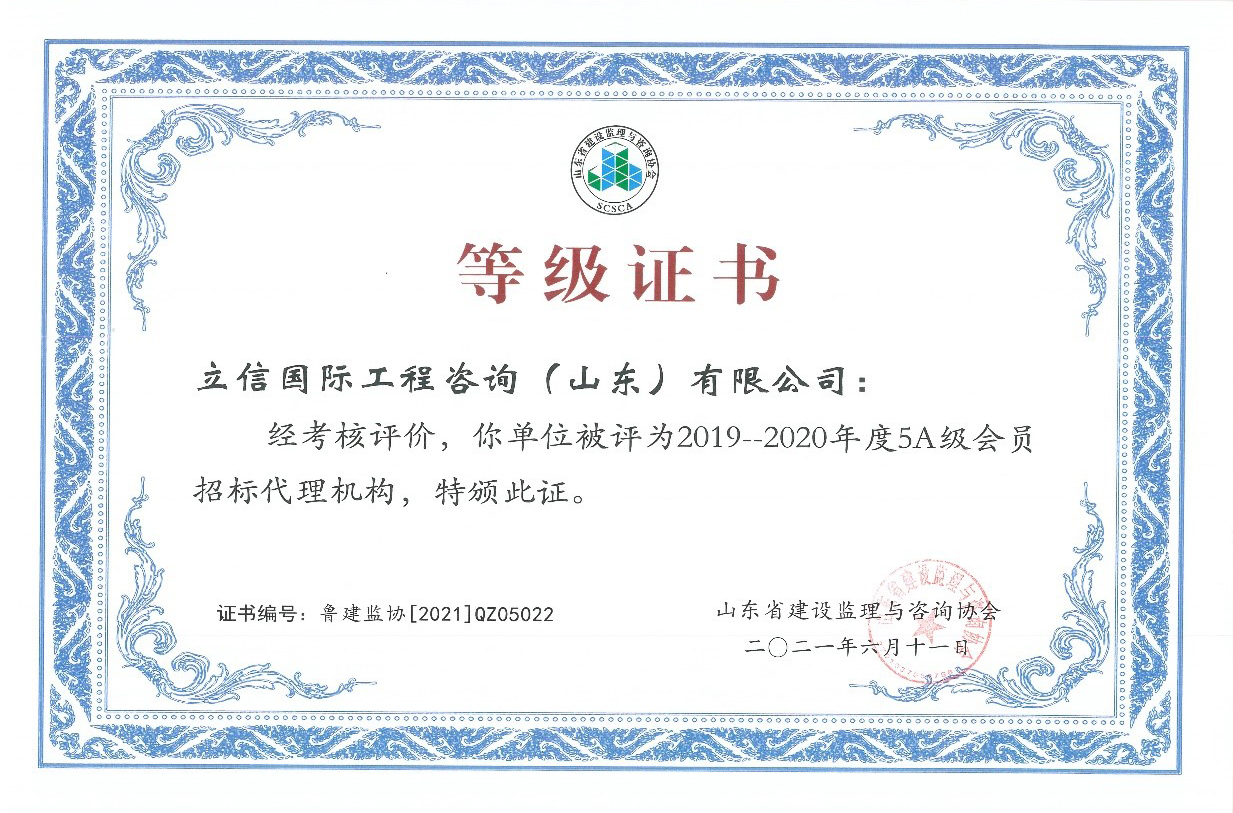 | 我公司獲得山東省首批5A級(jí)監(jiān)理企業(yè)、5A級(jí)招標(biāo)代理機(jī)構(gòu)、4A級(jí)全過程工程咨詢單位 |