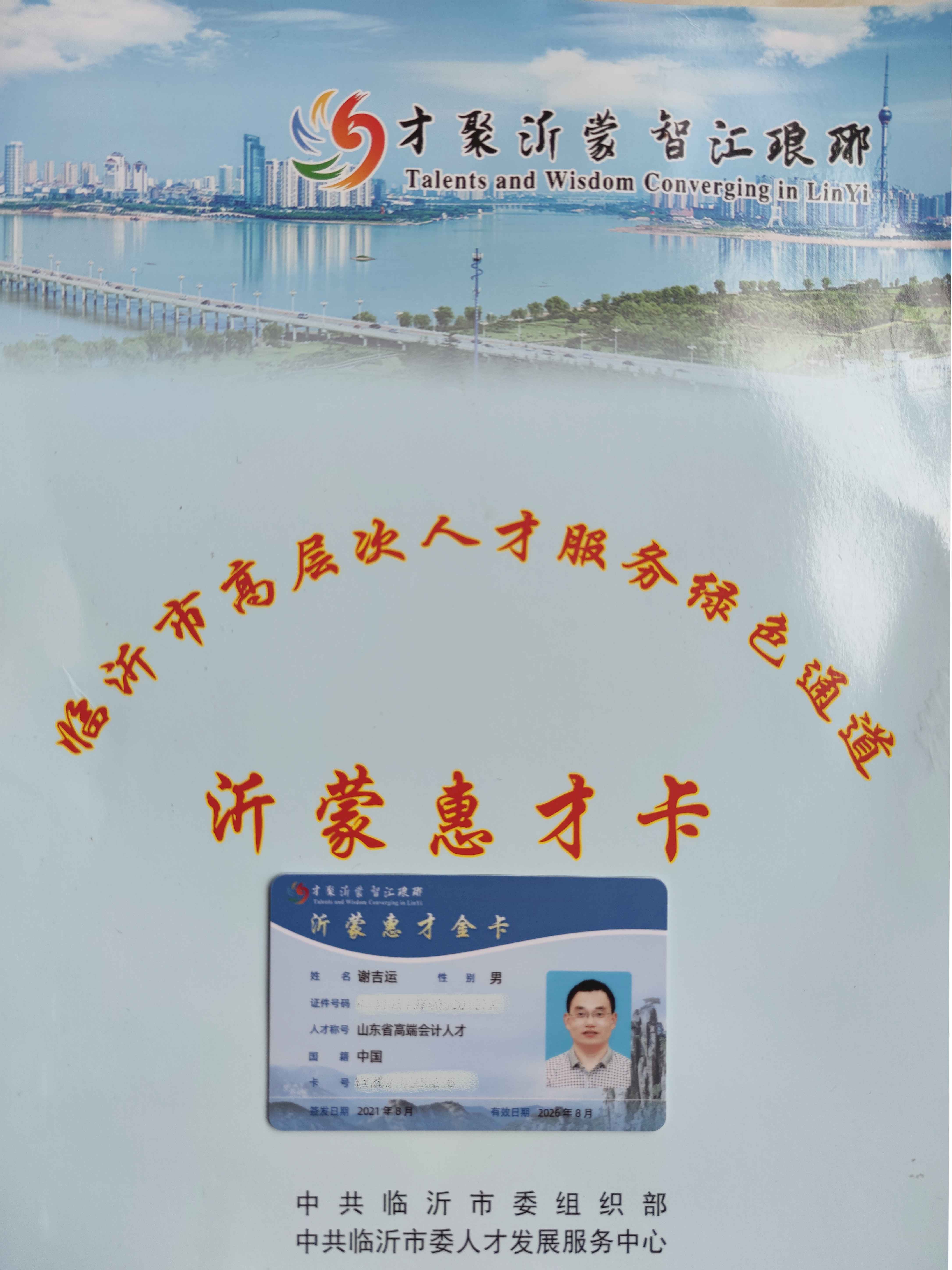 | 我單位職工謝吉運(yùn)獲臨沂市高層次人才 “沂蒙惠才卡” |