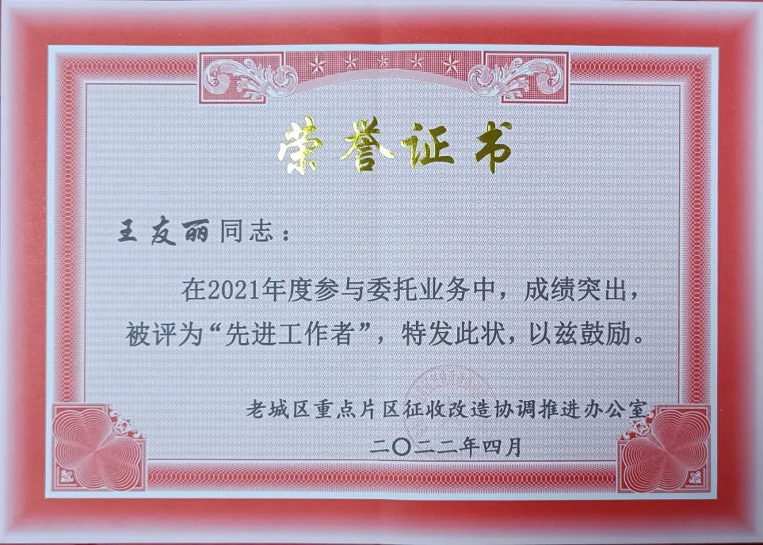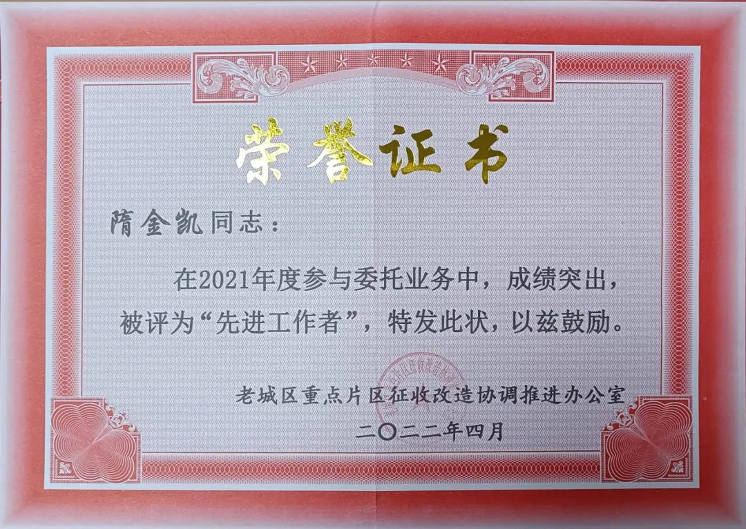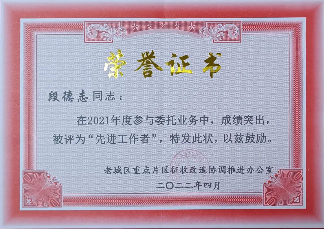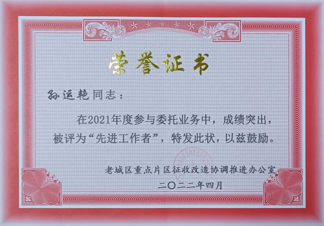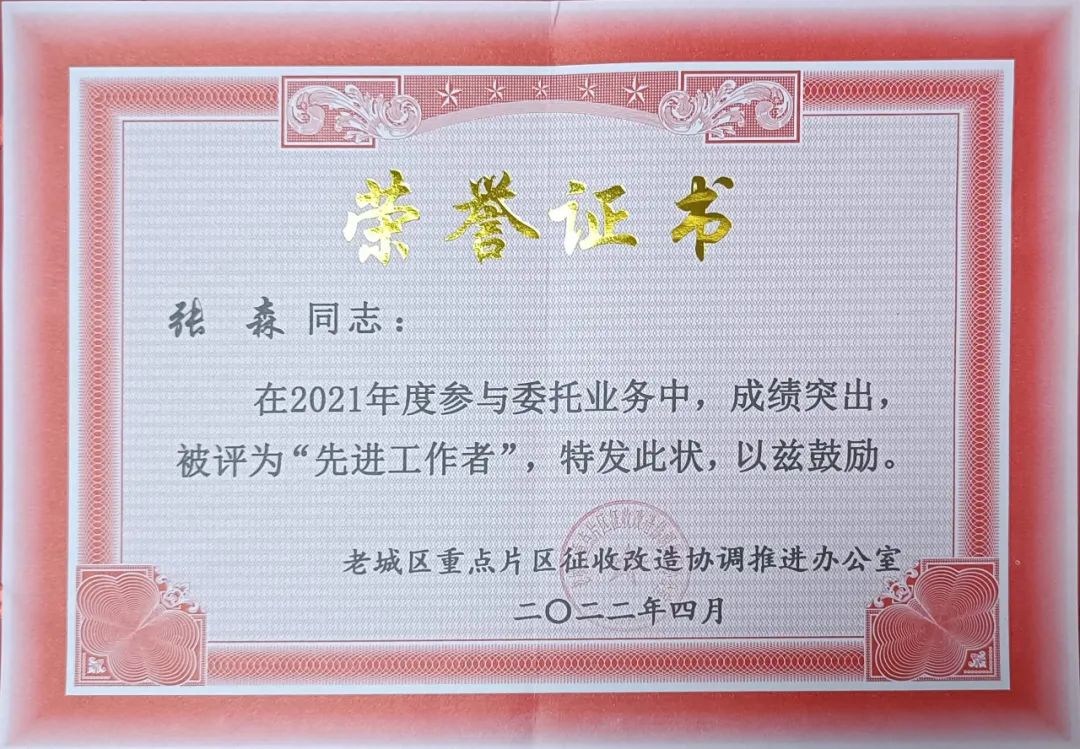| 創(chuàng)優(yōu)爭先、干事創(chuàng)業(yè)--我集團(tuán)張森等8名同志被市老城區(qū)推進(jìn)辦授予“先進(jìn)工作者”稱號 |