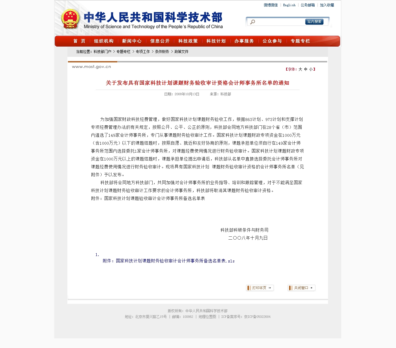關(guān)于發(fā)布具有國(guó)家科技計(jì)劃課題財(cái)務(wù)驗(yàn)收審計(jì)資格會(huì)計(jì)師事務(wù)所名單的通知
